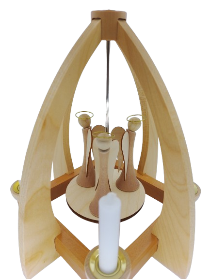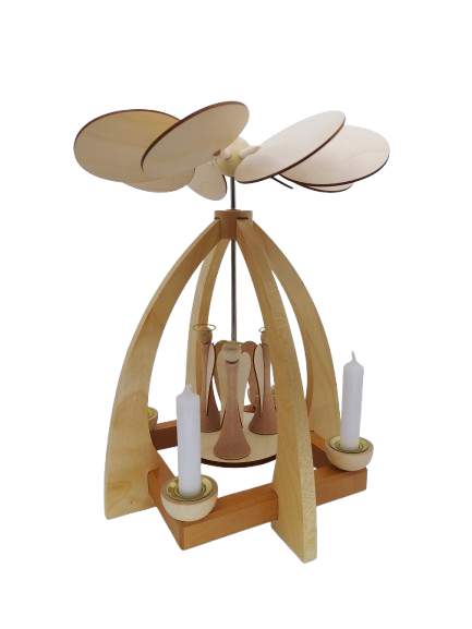 Each pyramid, whether small or large, features fan blades that gently turn with candle warmth. Meanwhile, hand-carved scenes—angels, nativity figures, forest animals, or abstract shapes—add a timeless charm. These designs reflect both nostalgia and modern taste, making them a perfect fit for traditional and contemporary homes alike.