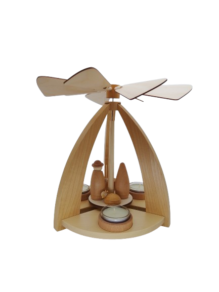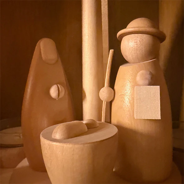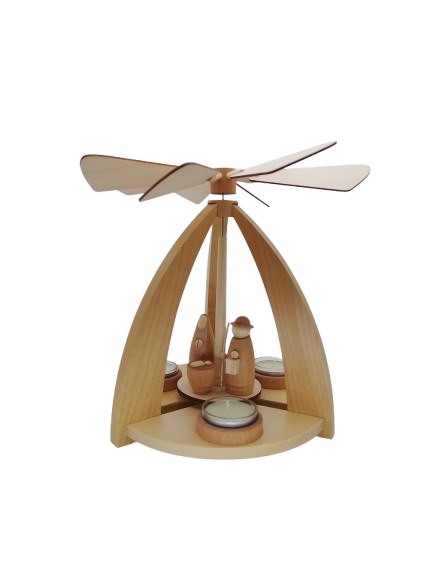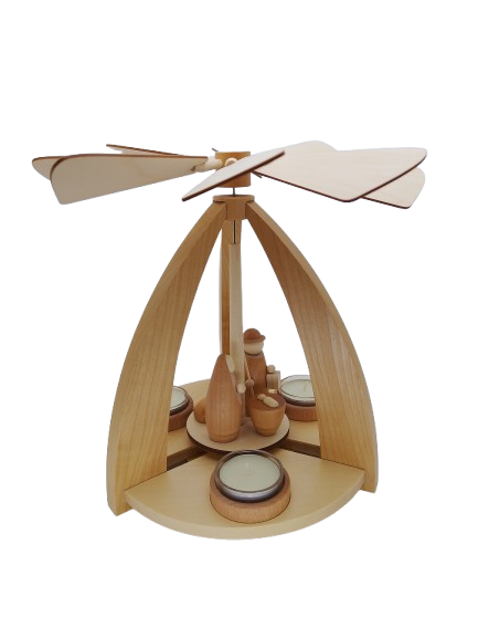 The pyramid combines traditional craftsmanship with a modern interpretation and presentation. The hand-turned figures feature a minimalist depiction of the events of the Holy Night. They are set in motion by three tealight candles. Different wood tones create a harmonious play of colors. With its size, it is perfectly suited as a table pyramid. Genuine Erzgebirge – woodcraft with heart.